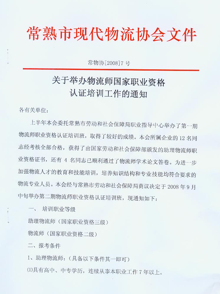 于举办物流师国家职业资格认证培训工作的通知